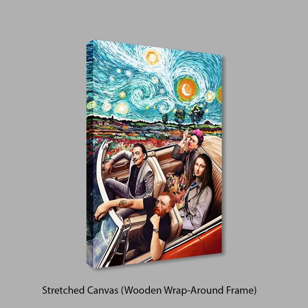 The Van Gogh Roadtrip is a Parody Artwork derived from the famous Starry Nights by Vincent Van Gogh, the portrait of Mona Lisa, and Self-Portraits of Frida Kahlo, Vincent Van Gogh and Salvador Dali.